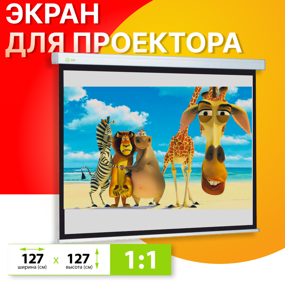 Экран Cactus Wallscreen CS-PSW-127X127 белый, размер экрана 127x127см, формат 1:1, настенно-потолочный, рулонный