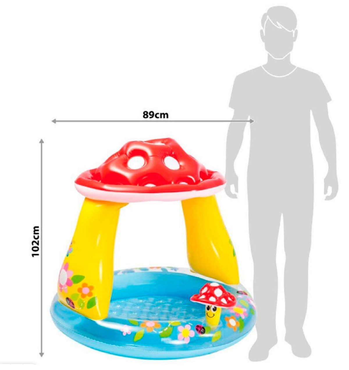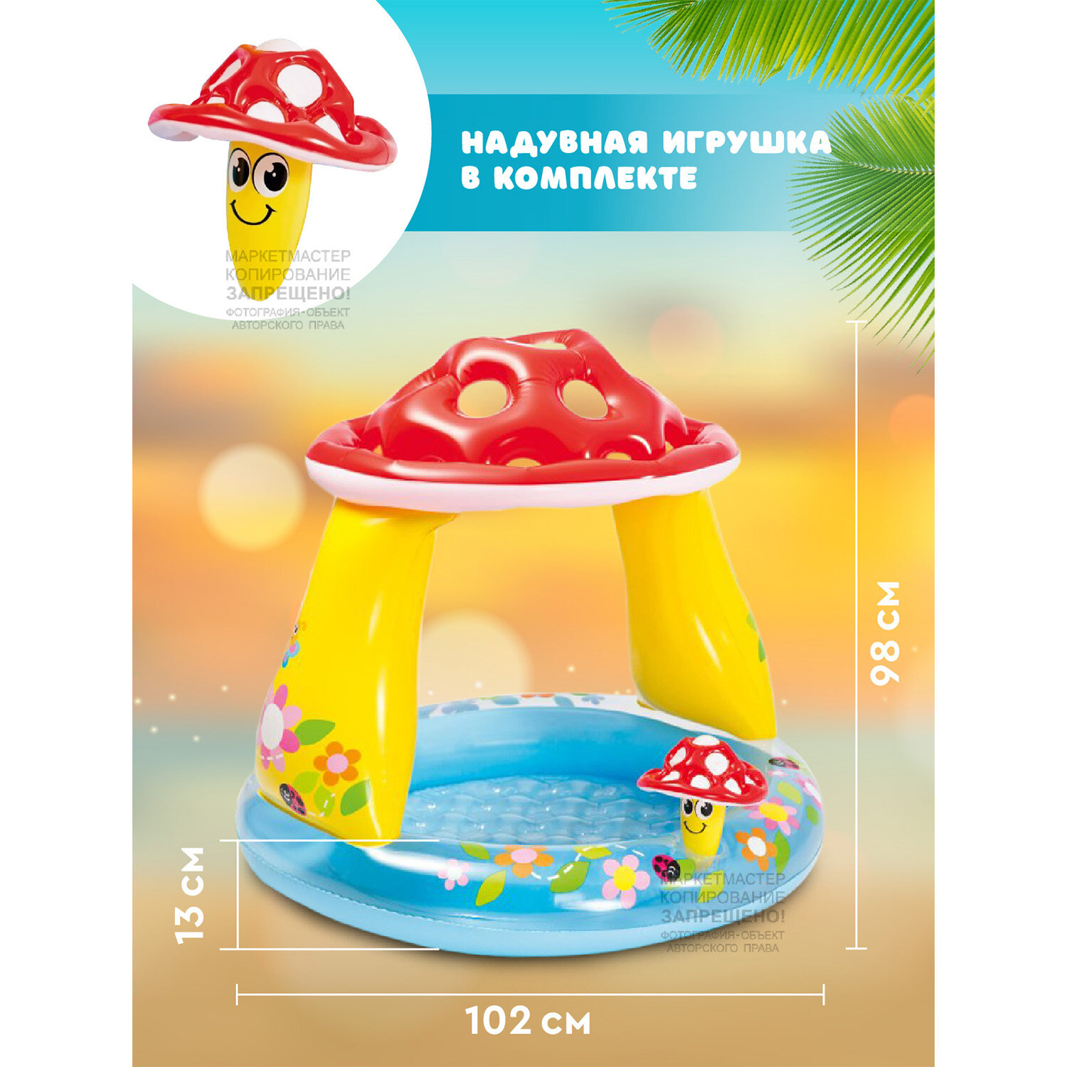 INTEX Детский бассейн с навесом Мухомор 102*89 см, надувное дно 57114