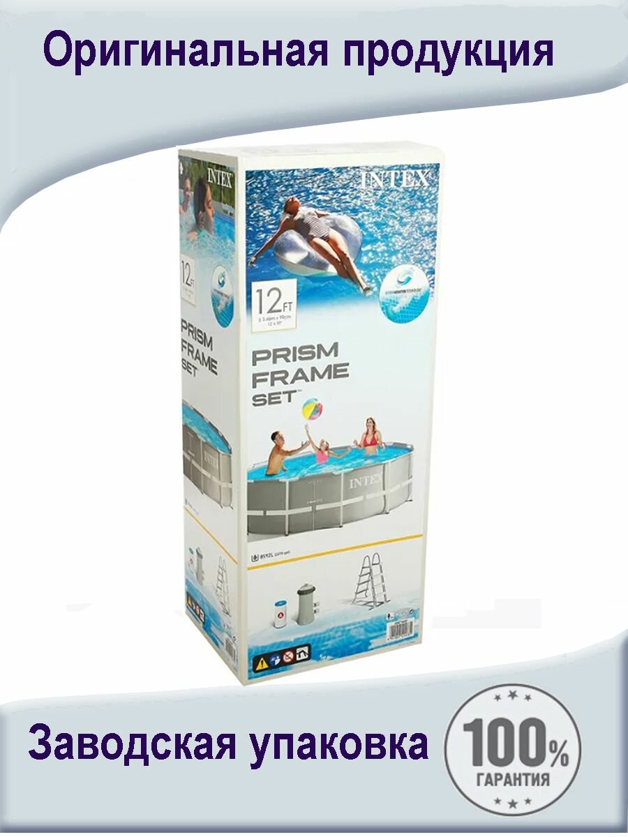 Каркасный бассейн Prism Frame 457х107см, 14614л, фил. насос 3785 л ч, лестница, тент, подстилка, Intex, 26724