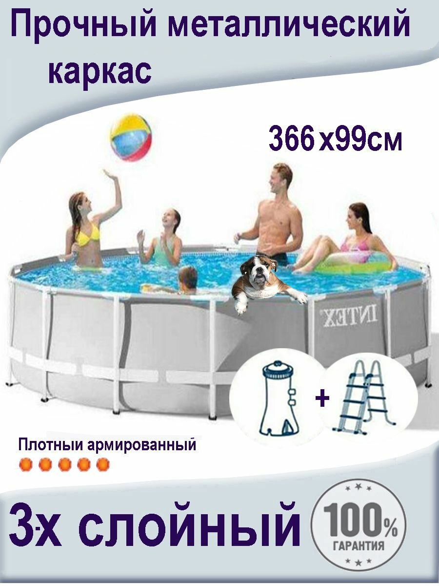 СохранитьКаркасный бассейн INTEX круглый Prism Frame 366x99 см интересное: