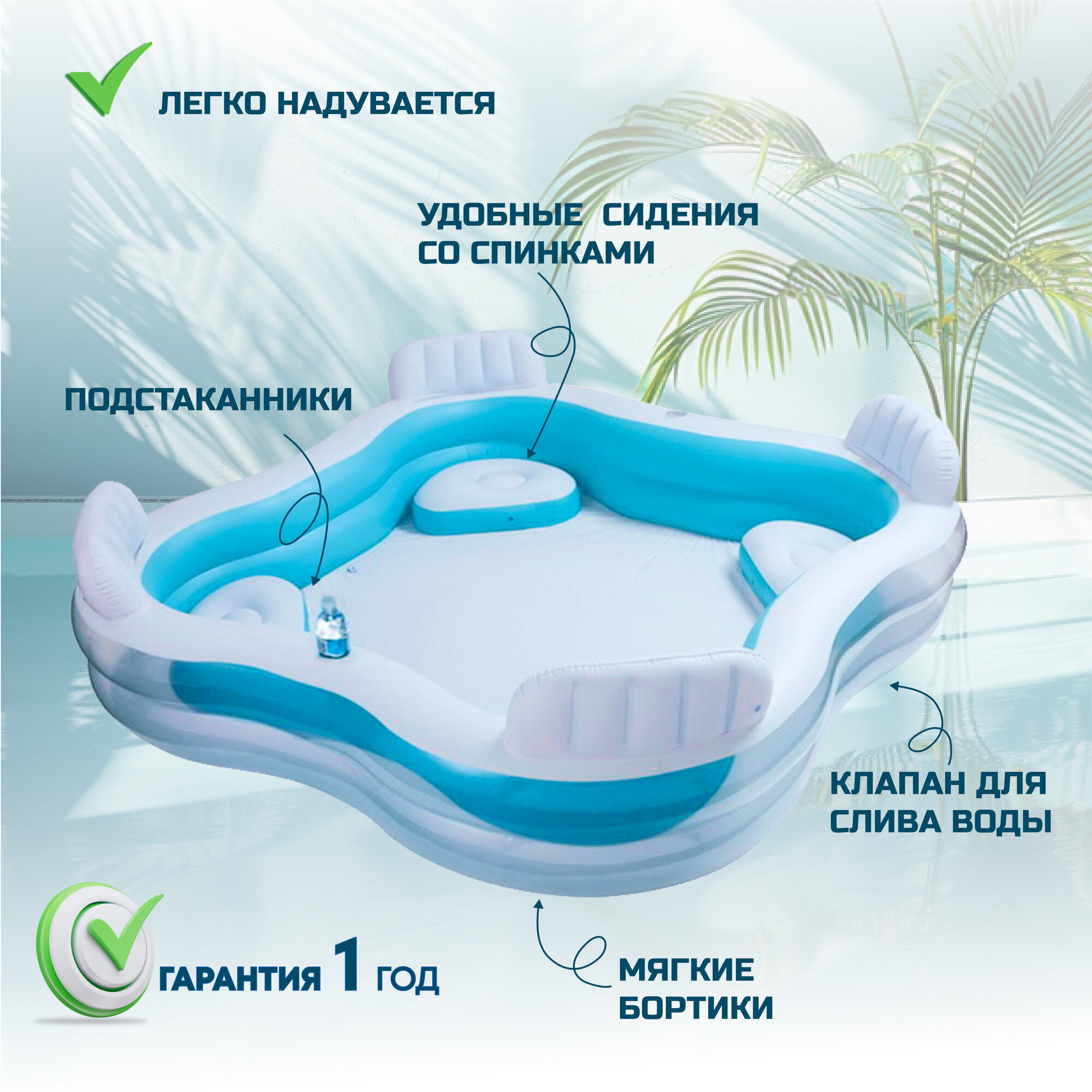 Бассейн надувной INTEX Семейный с 4 сиденьями 229 х 229 х 66 см, 56475NP