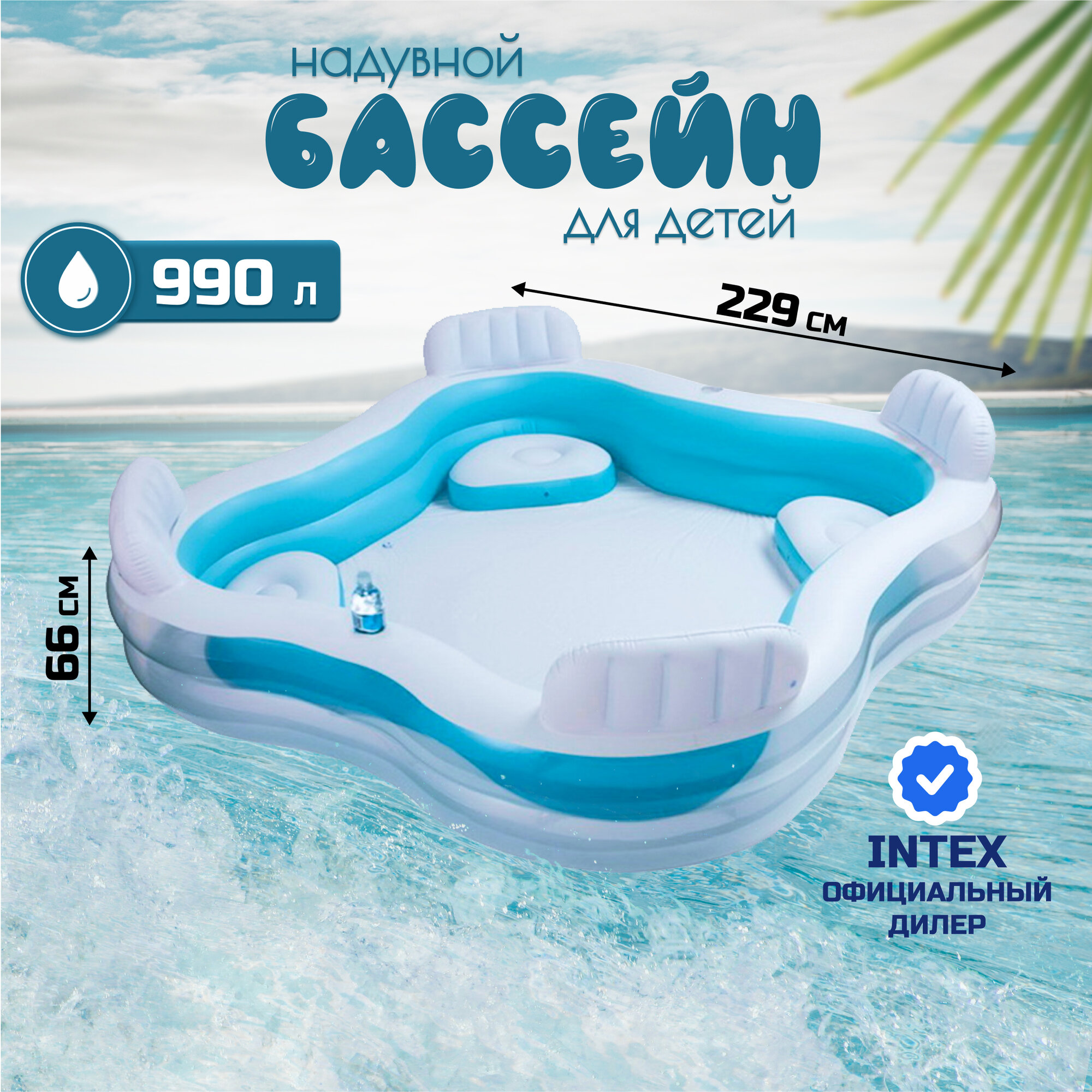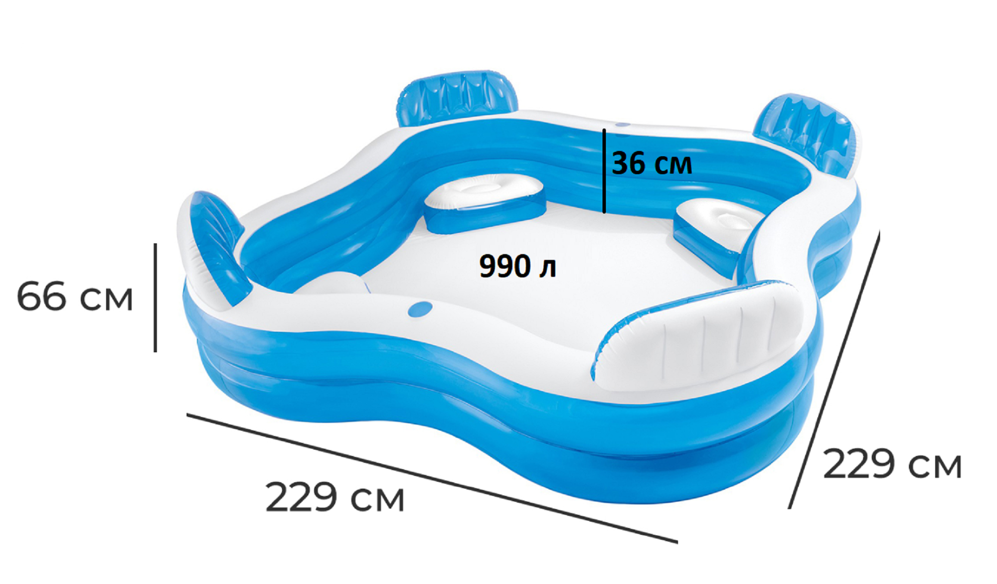 Бассейн надувной Семейный с 4 сиденьями (229х229х66 см) Intex 56475