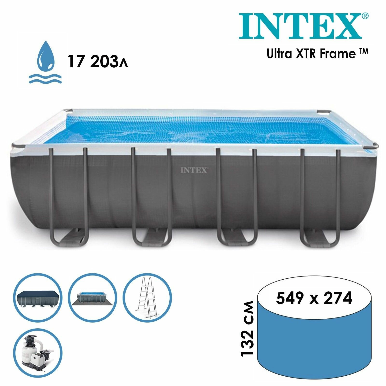 INTEX Прямоугольный каркасный бассейн 26356 Intex Ultra XTR Frame 549*274*132 см, песочный фильтр-насос, аксессуары 26356
