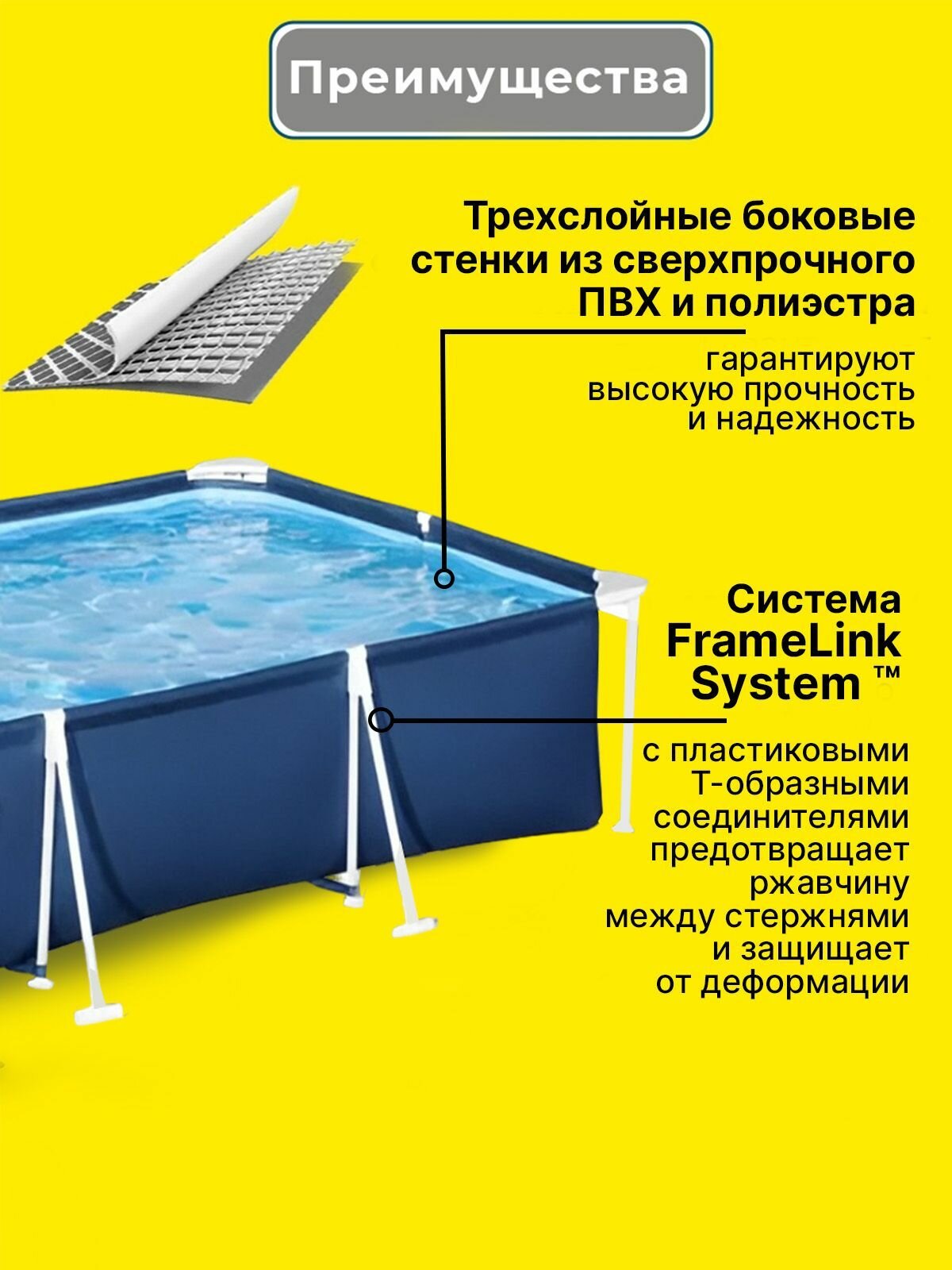 Бассейн каркасный прямоугольный 3300л 300х201 h66см 3 слоя металлический каркас, сливной клапан