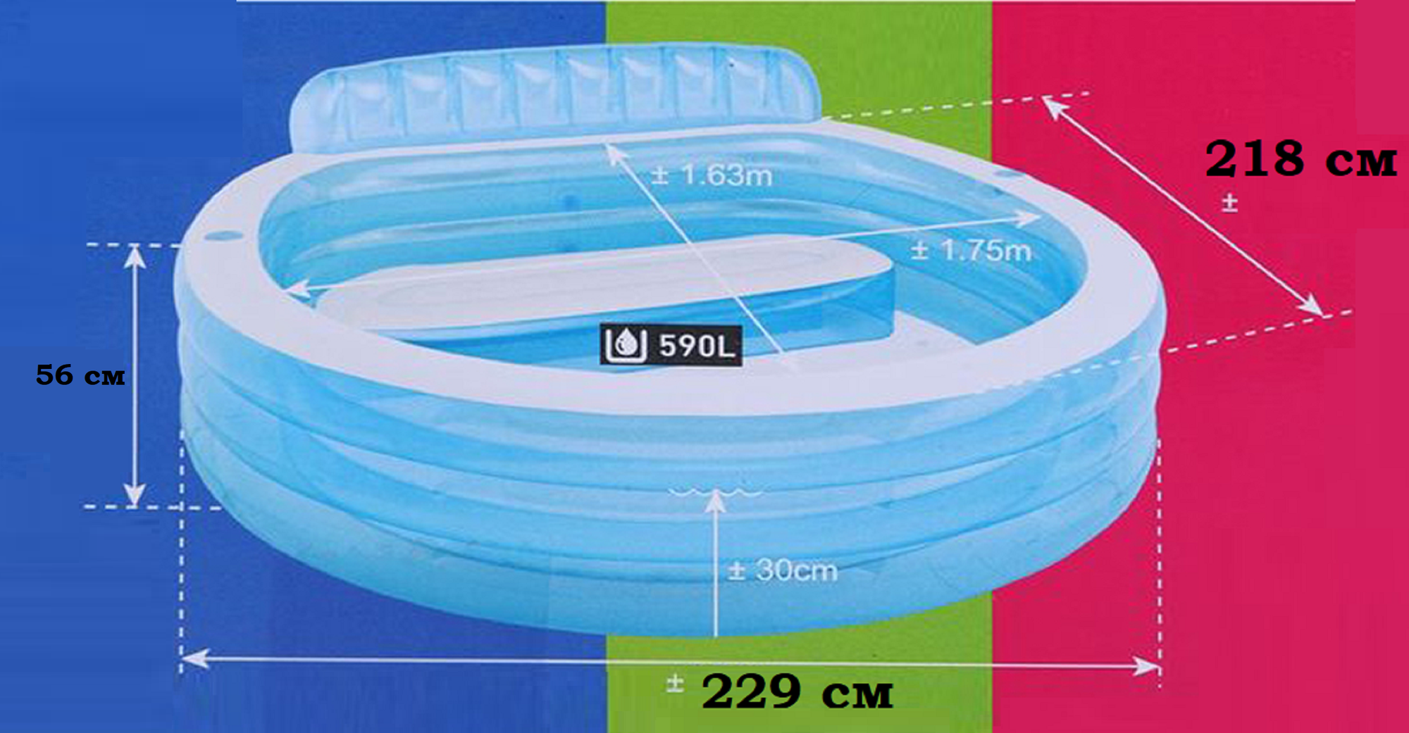 Бассейн надувной с подголовником, 229 х 218 х 79 см, от 3 лет