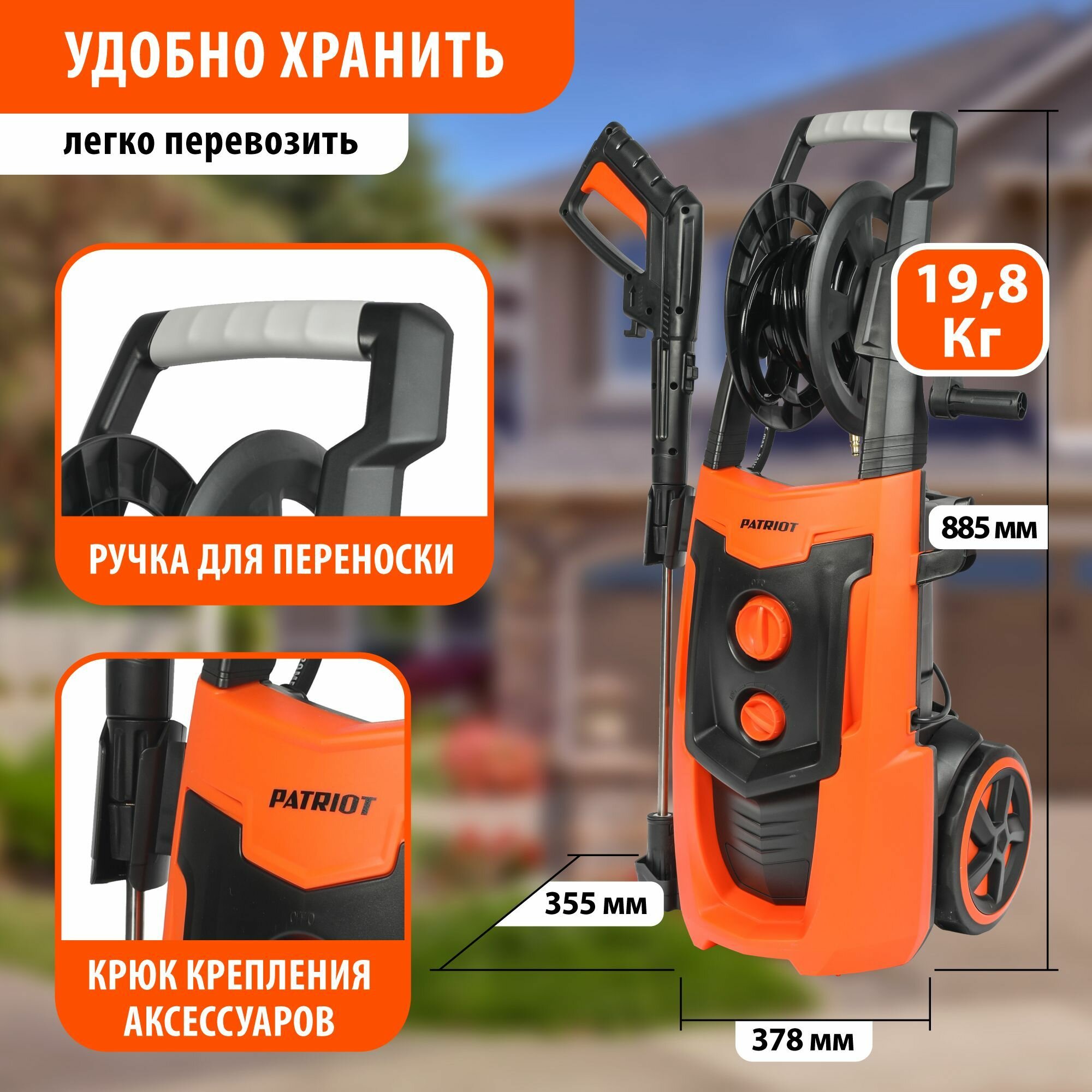 Мойка высокого давления PATRIOT GT970 Imperial самовсасывающая, 170бар, 2600Вт, шланг 8м, дополнительный фильтр