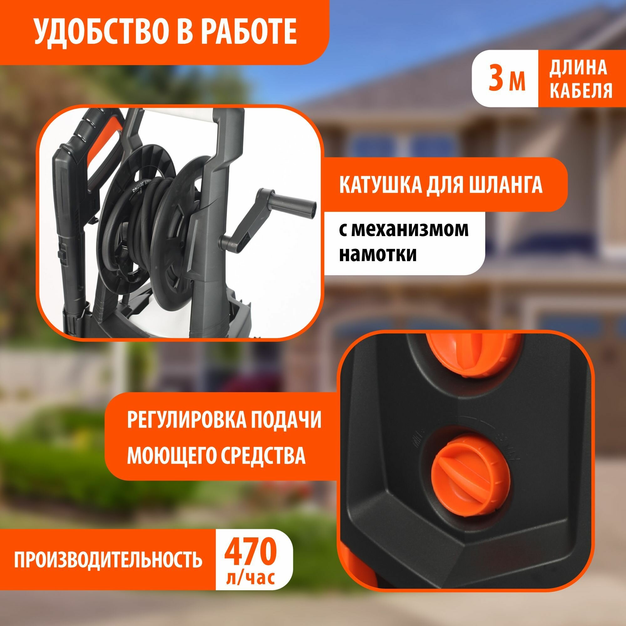 | Плюсы: | Катушка, длинный шланг... |