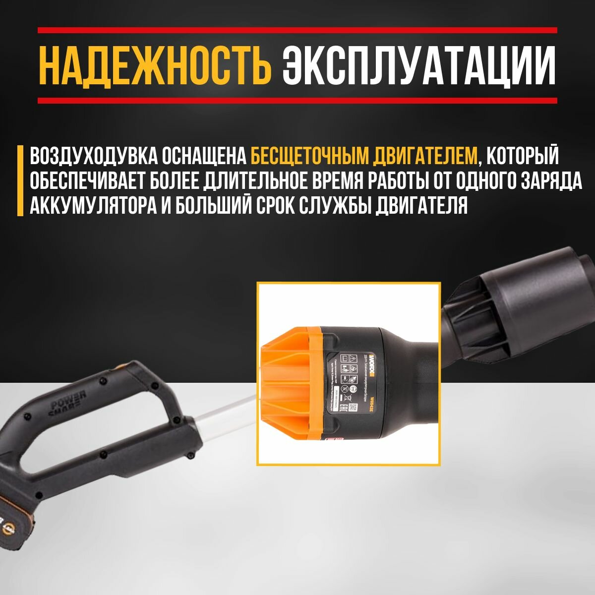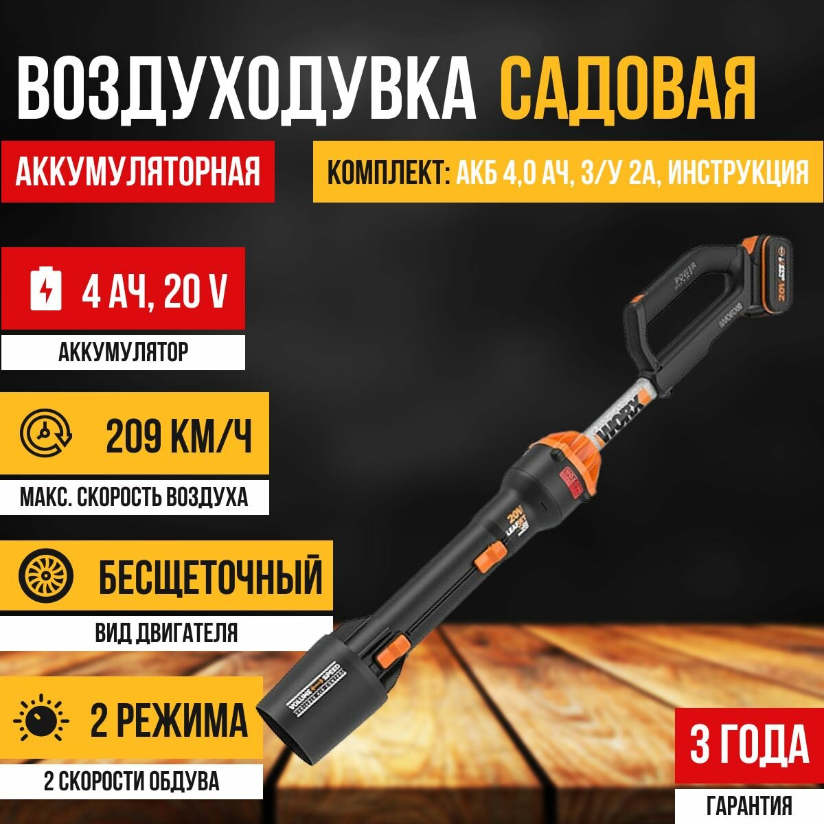 Воздуходувка аккумуляторная WORX WG543E, ветродуйка для дома, улицы, дачи, АКБ и ЗУ в комплекте