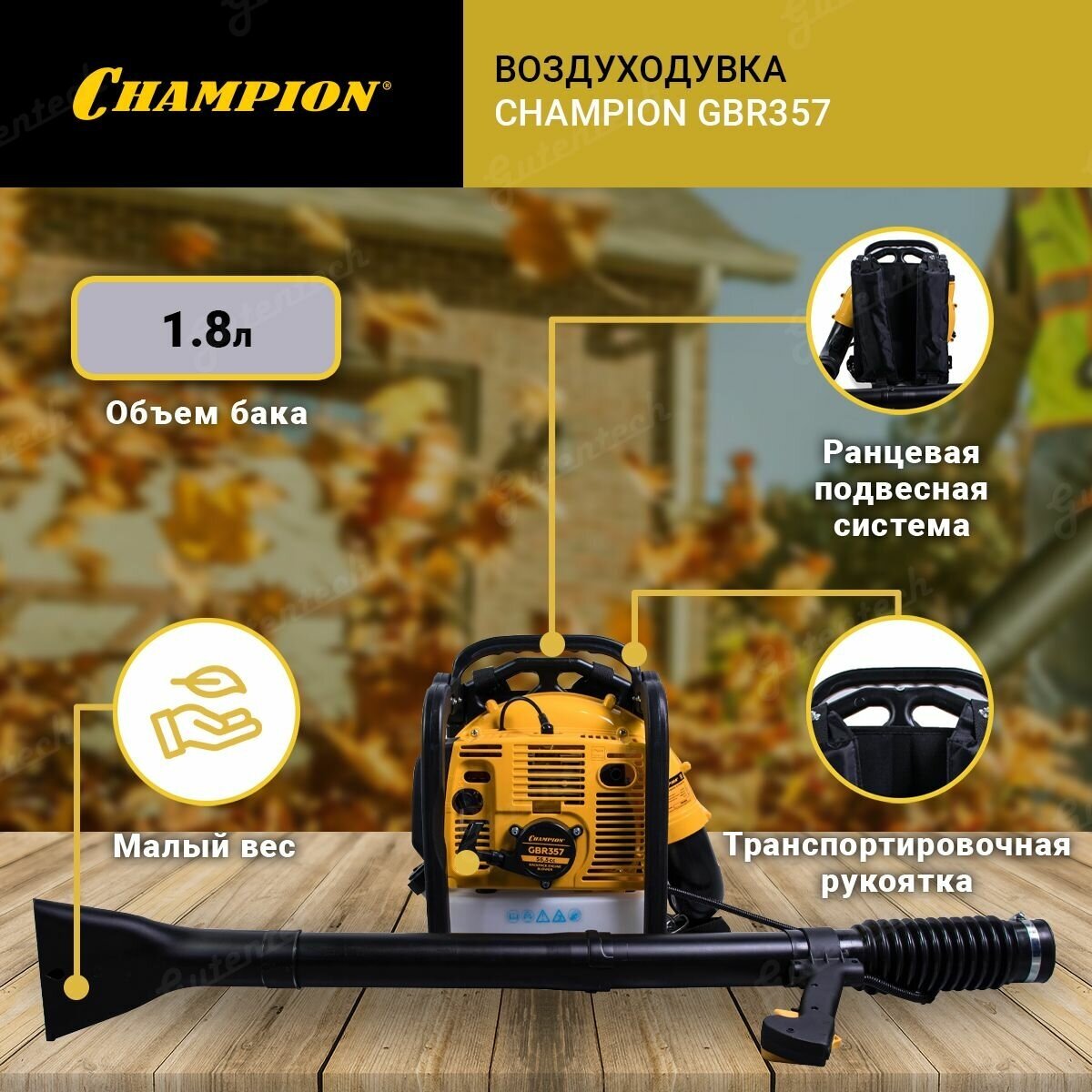 СохранитьВоздуходувка бензиновая ранцевая Champion GBR357 интересное: