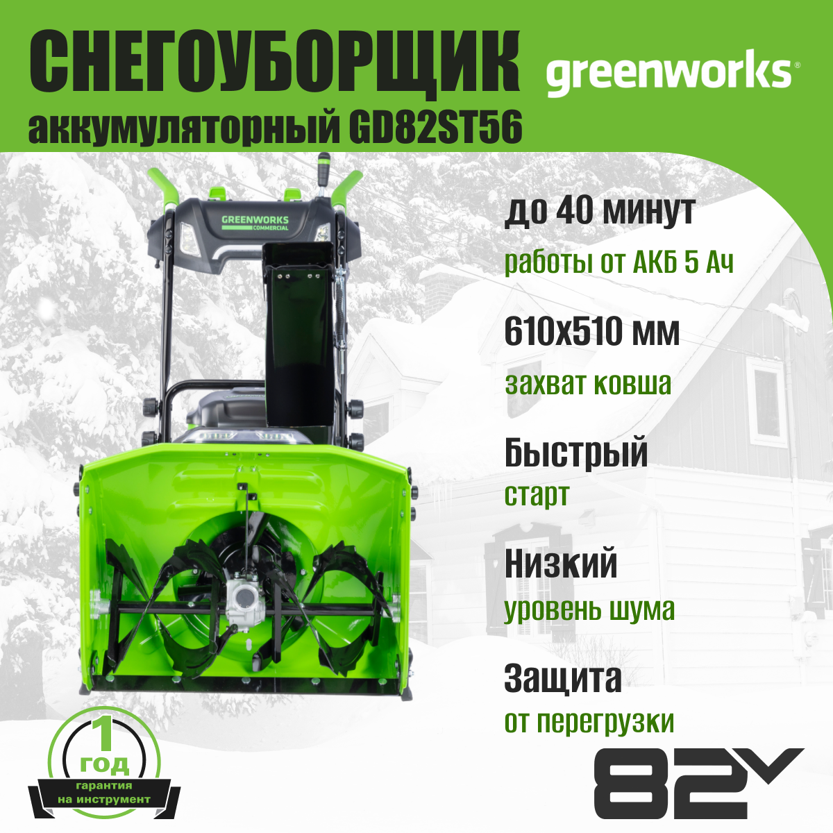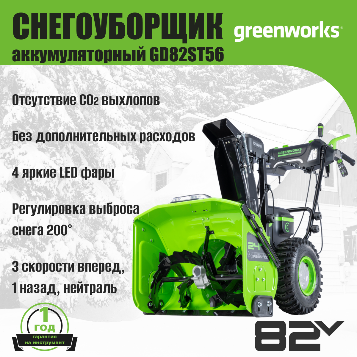 СохранитьСнегоуборочная машина Greenworks 2602807, снегоуборщик аккумуляторный 82V, 61 см, самоходный,без АКБ и ЗУ интересное: