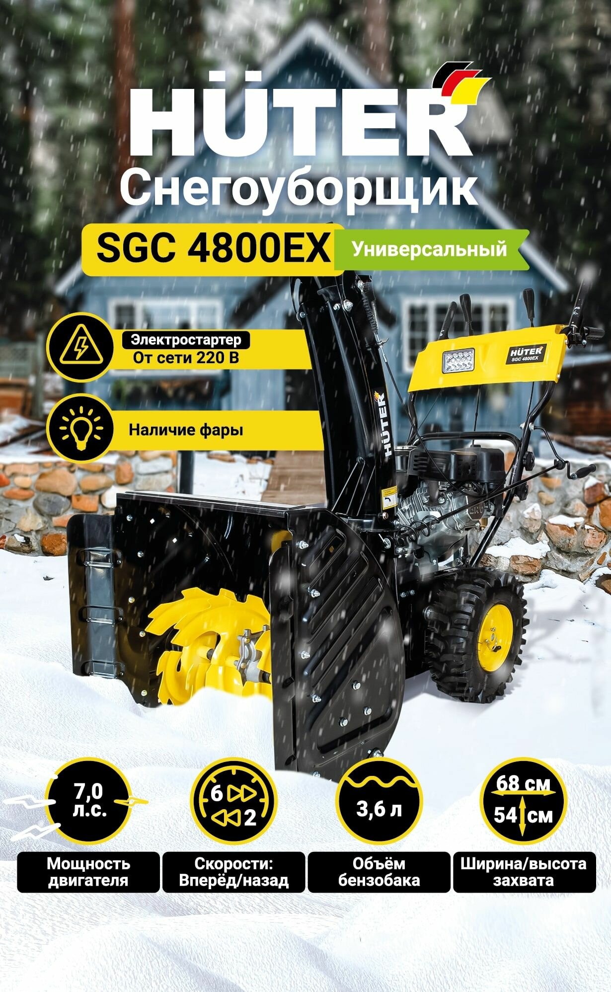 Купить Снегоуборщик Huter SGC 4800EX, 7 л.с. ковш 68х54, 6 вперед/2 назад, электростартер от 220В