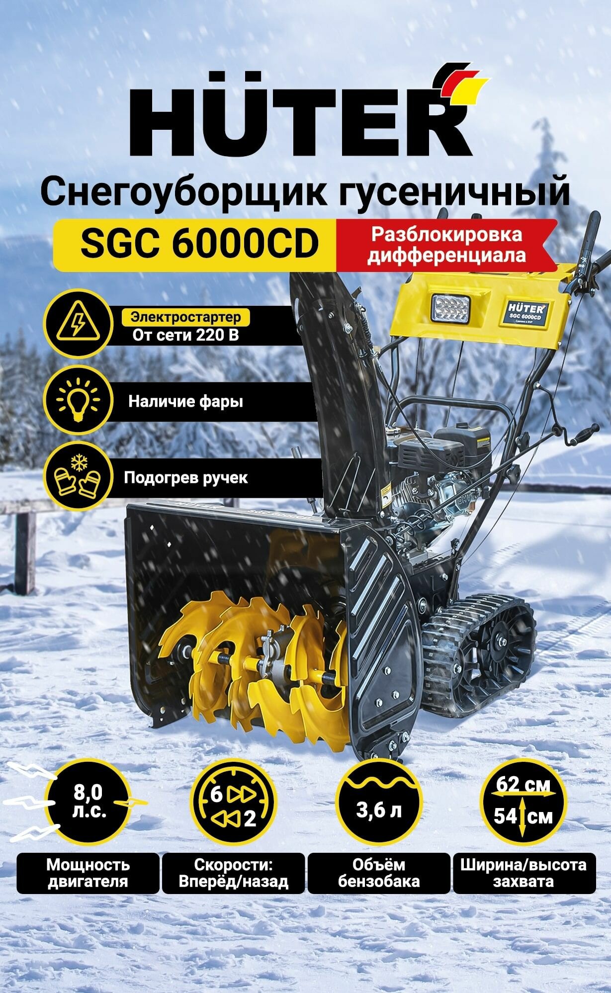 Снегоуборщик бензиновый Huter SGC 6000CD (на гусеницах)