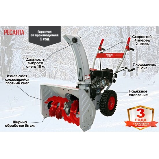 Купить Снегоуборщик СБ 4000 Ресанта, 7 л.с., ковш 56х42см, 4 вперед/2 назал