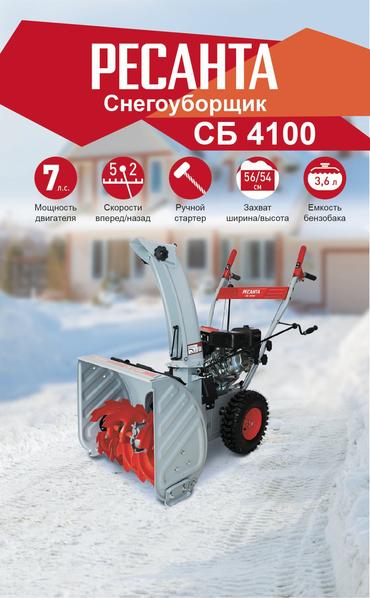 Снегоуборщик СБ 4100 Ресанта ( 7л.с. / 5 скоростей / 540 глубина / ширина 560 / ручной стартер )