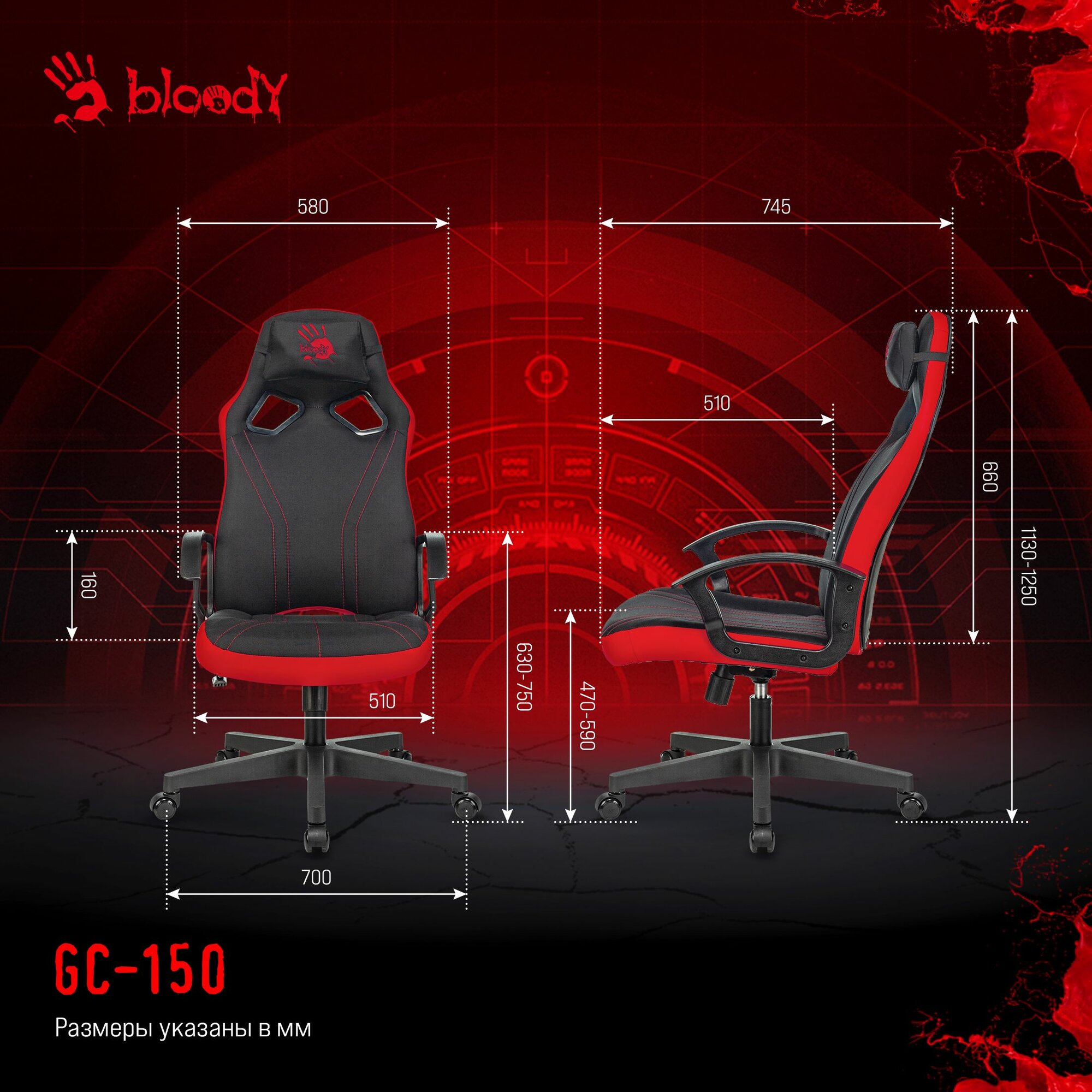 Кресло игровое A4Tech Bloody GC-150, черный/красный (BLOODY GC-150)