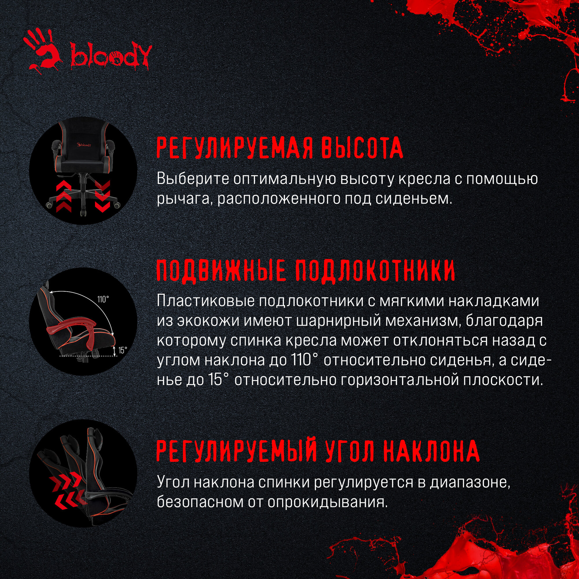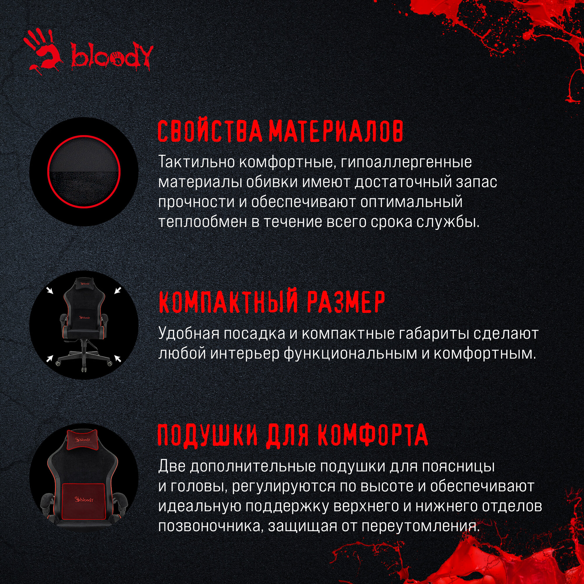 Ниже Вы можете прочитать отзывы на Кресло игровое A4TECH Bloody GC-670, на колесиках, ткань/экокожа, 1шт. в комплекте черный/красный, ознакомится с подробными характеристиками, посмотреть интересные обзоры и фотографии на Кресло игровое A4TECH Bloody GC-670, на колесиках, ткань/экокожа, 1шт. в комплекте черный/красный.