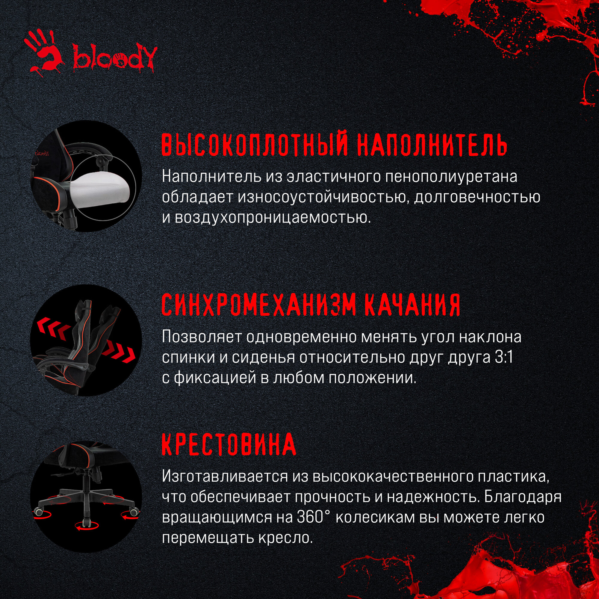 Игровое компьютерное кресло A4Tech Bloody GC-370 на колесиках, ткань+эко.кожа , чёрный