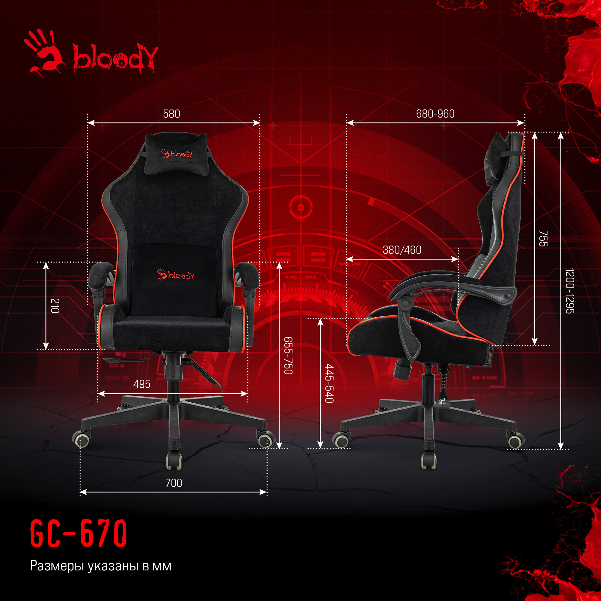Купить Кресло игровое A4TECH Bloody GC-670, на колесиках, ткань/экокожа, 1шт. в комплекте черный/красный