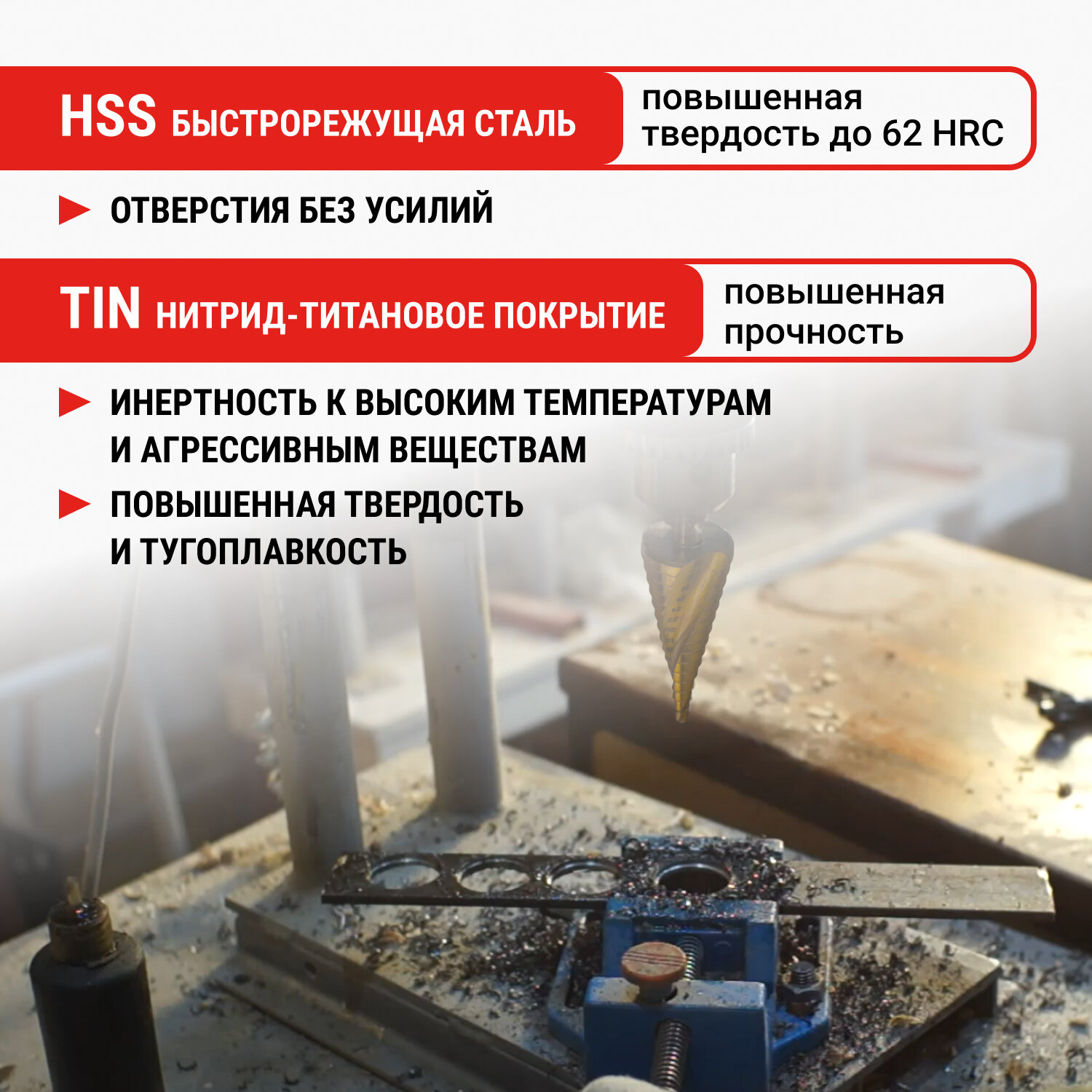 СохранитьСверло ступенчатое спиральное TiN с трёхгранным хвостовиком 4-32 мм VIRA интересное: