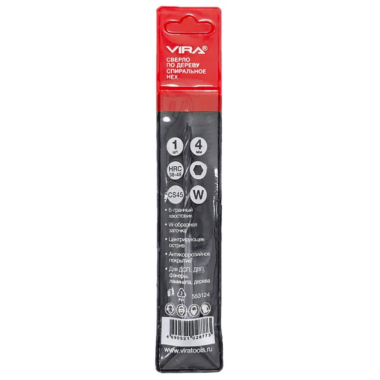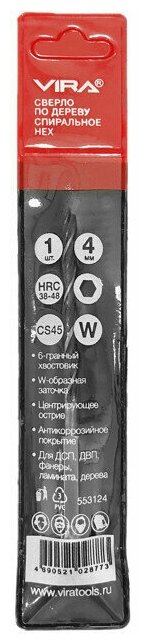 Купить VIRA Сверло по дереву HEX спиральное 4 мм 553124