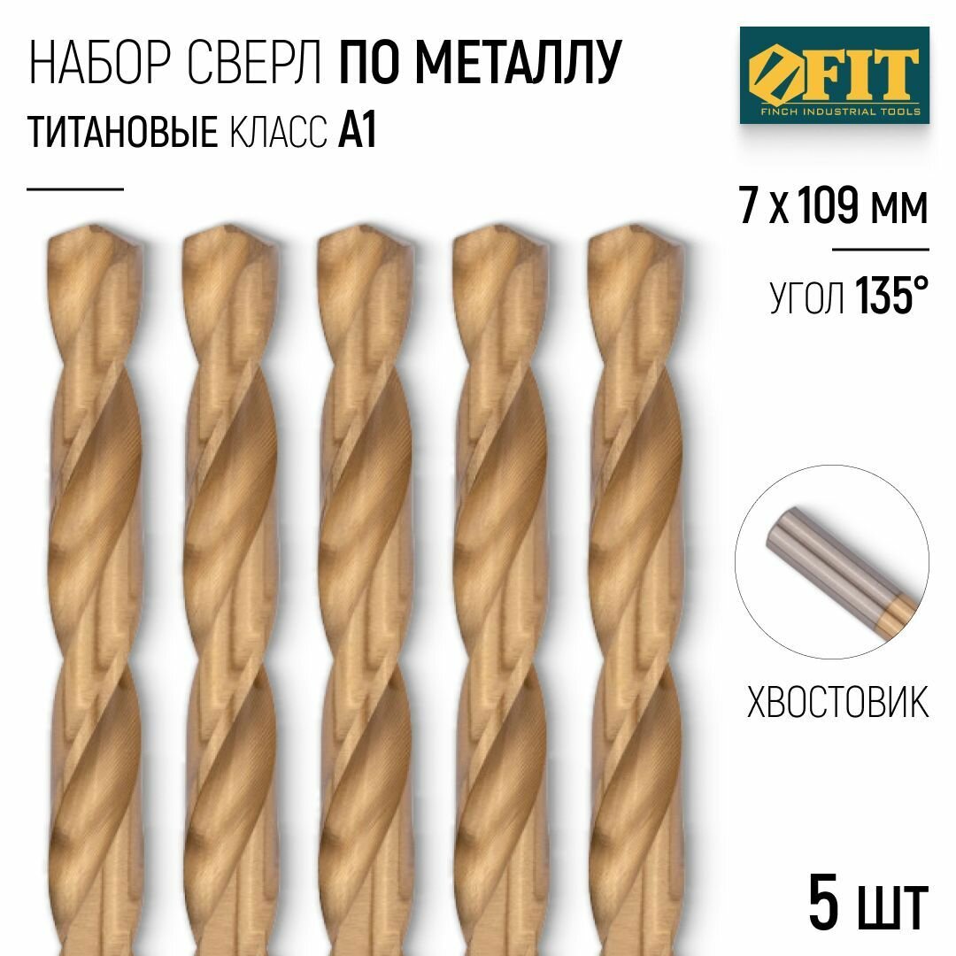 Сверло 5 шт по металлу (18х191 мм, HSS) FIT полированные