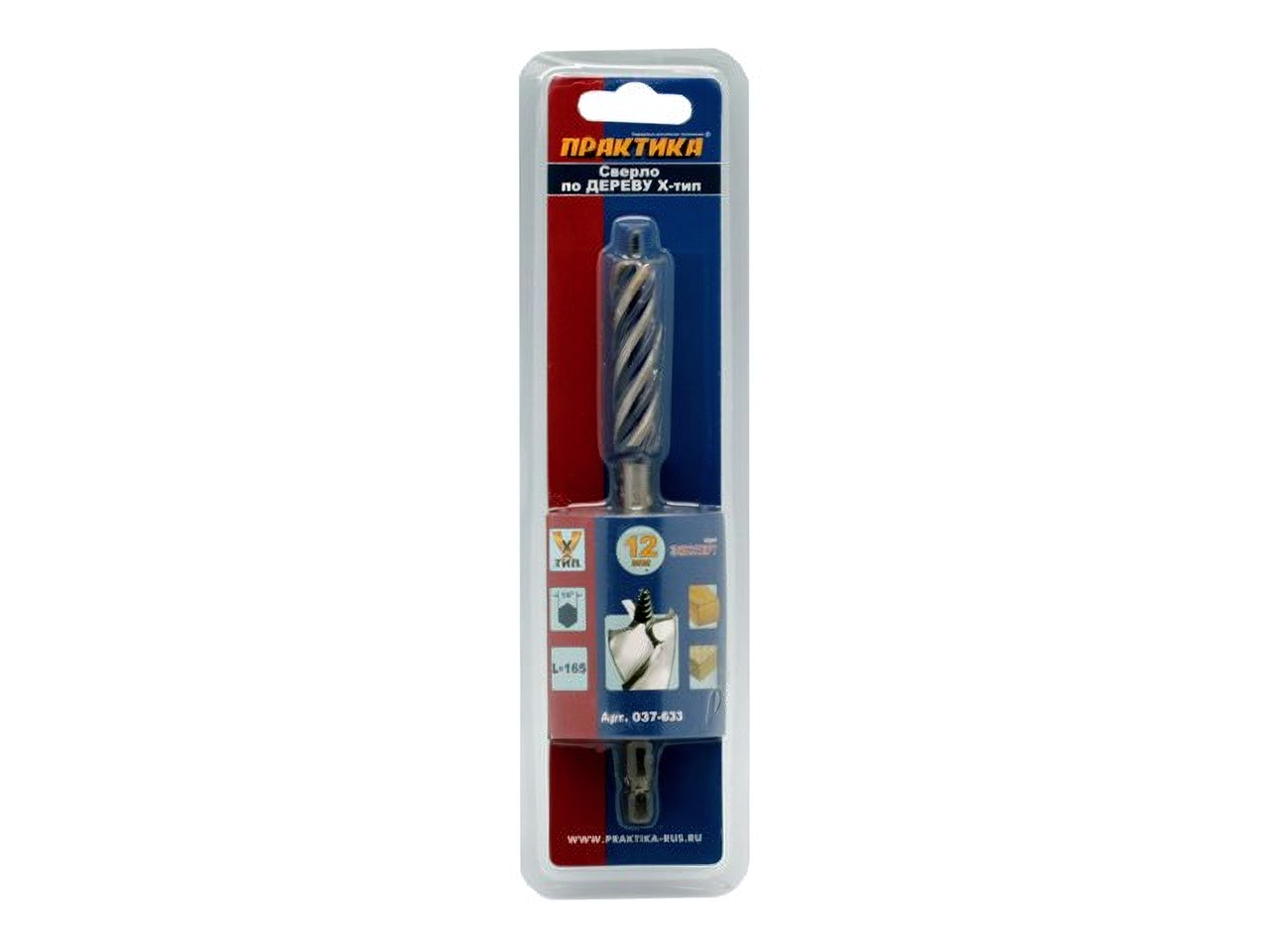 Сверло по дереву X-тип (12x165 мм; в блистере) ПРАКТИКА 037-633