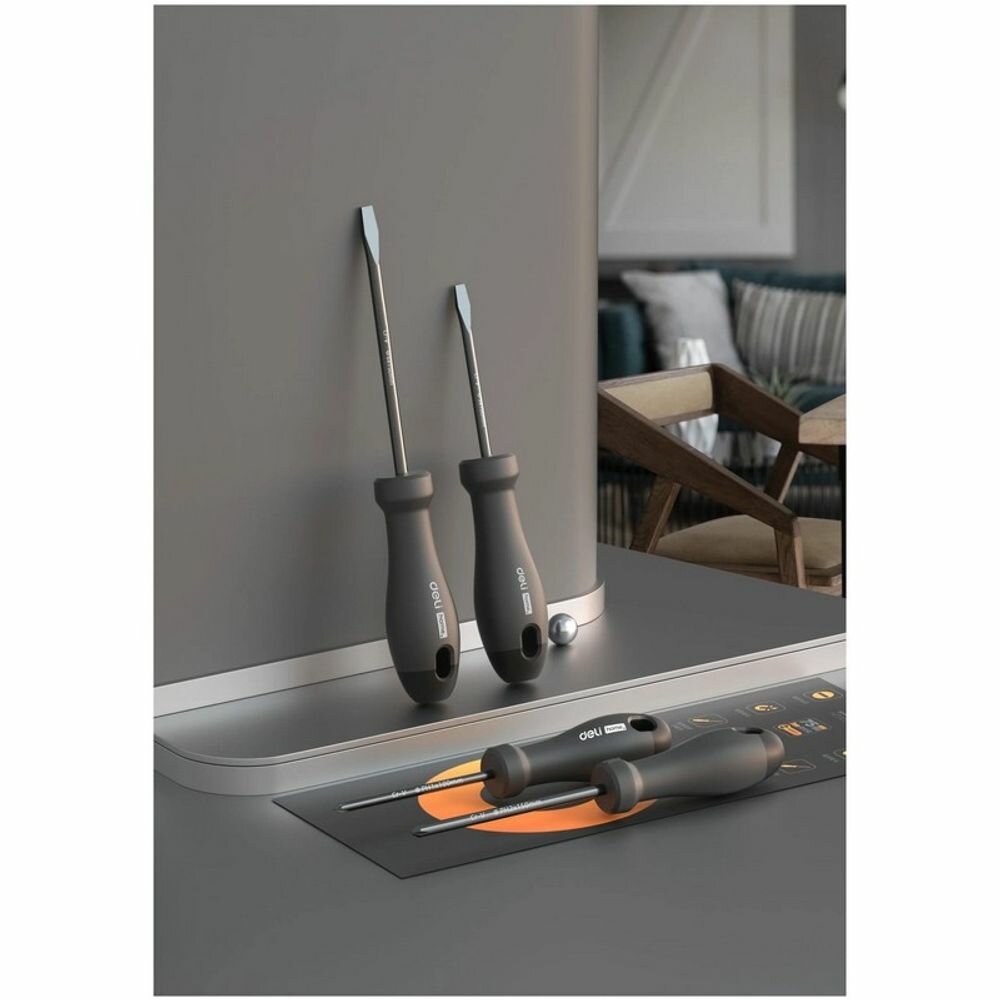 Набор отверток Deli Home Series Gray HT1004C 4шт (PH1x100, PH2x150, SL5x100, SL6x150, Cr-V, Soft Touch рукоятка, эксклюзивный дизайн) 130282