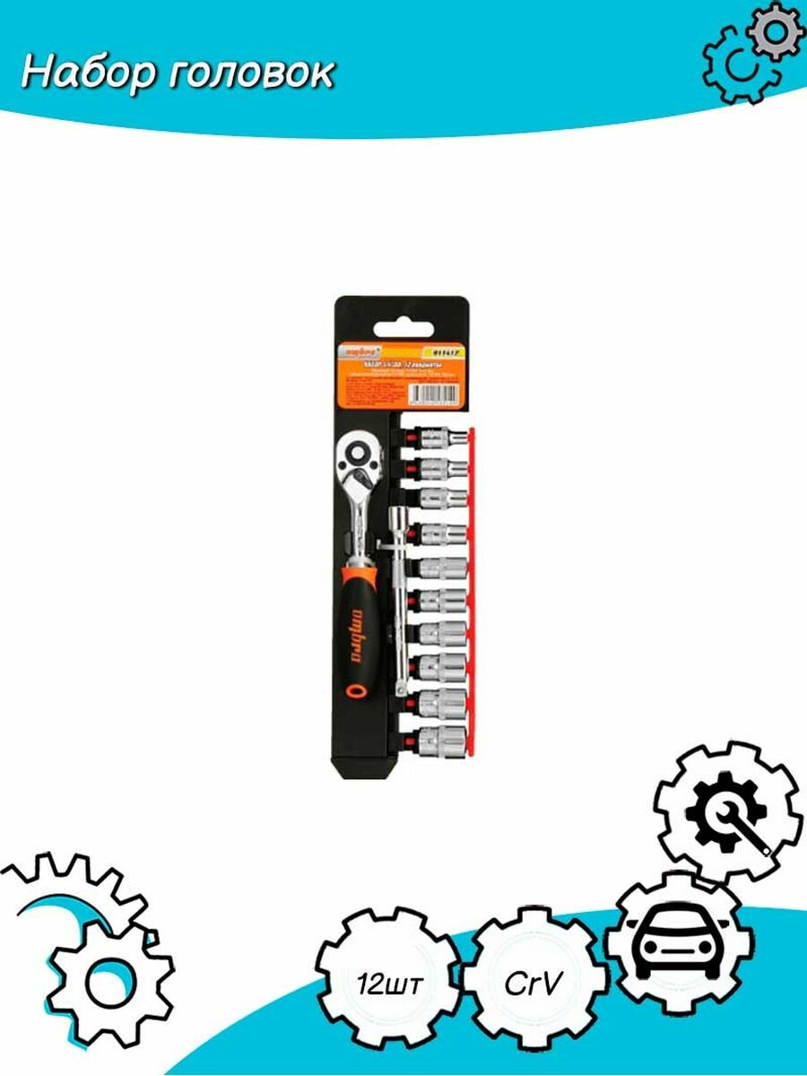 Набор головок с трещеткой,1/4 12предметовOMBRA 911412