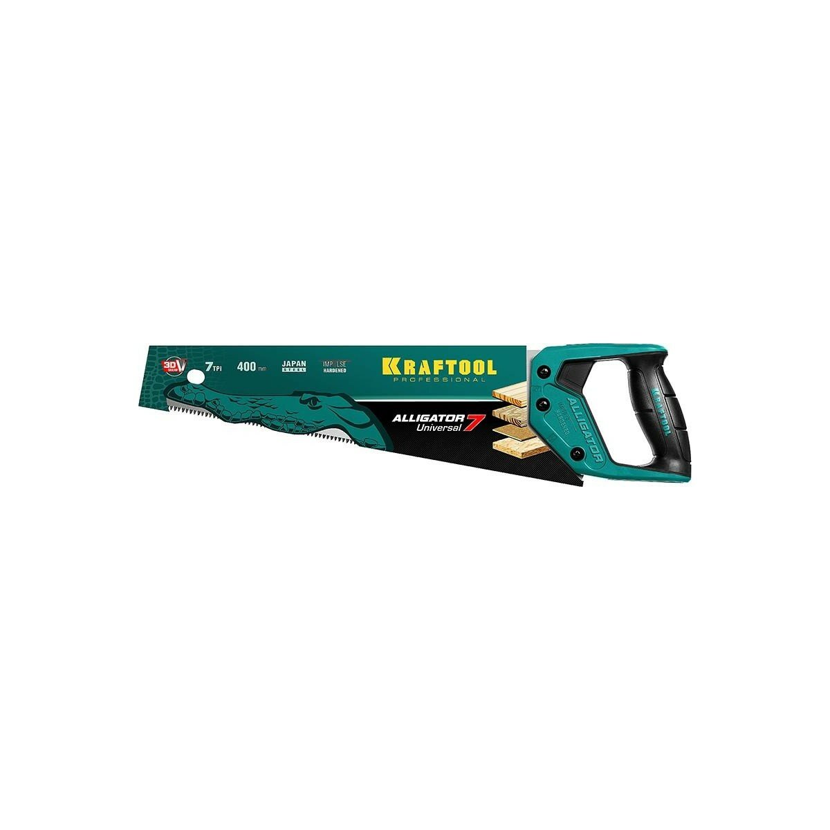 Ножовка KRAFTOOL Alligator 7 универсальная, 400 мм, 7 TPI, 3D зуб, 15004-40_z01