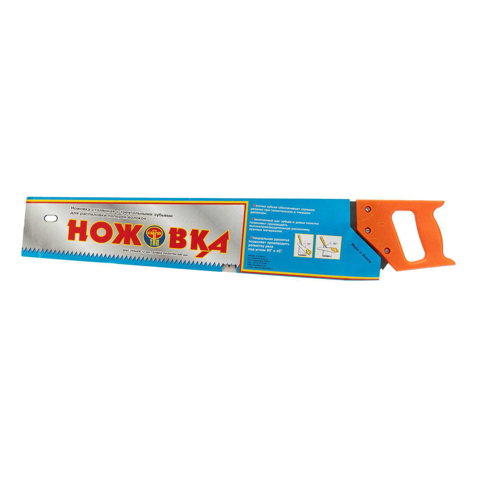 Ножовка по дереву, 600 мм, шаг зубьев 12 мм, пластиковая рукоятка (Ижевск) Россия