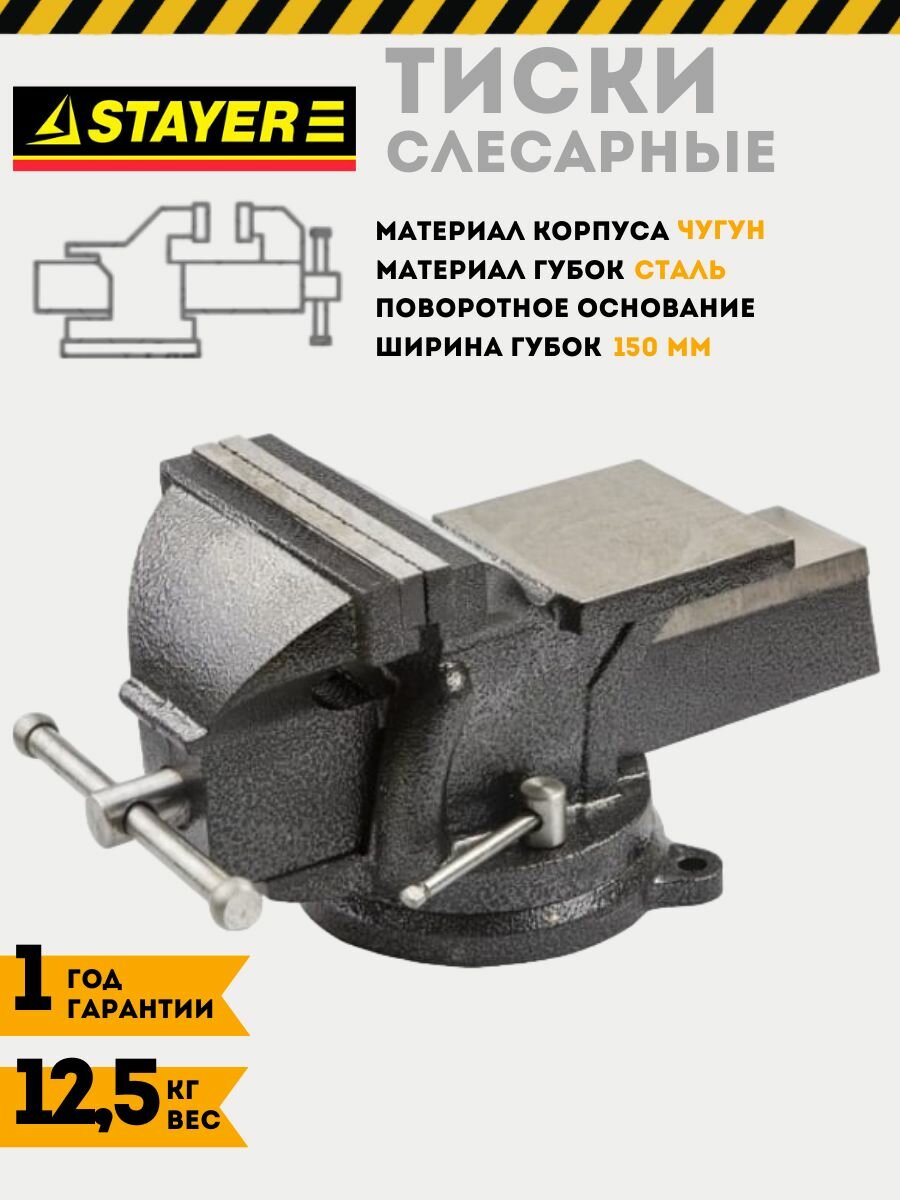 Тиски STAYER STANDARD слесарные с поворотным основанием 3254-150