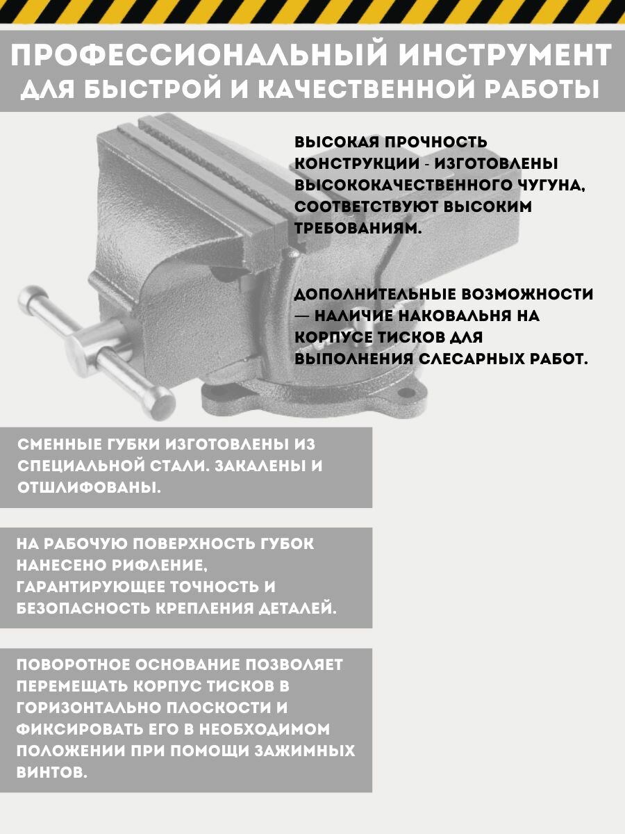 Sparta Тиски слесарные Sparta, 100 мм, поворотные, с наковальней