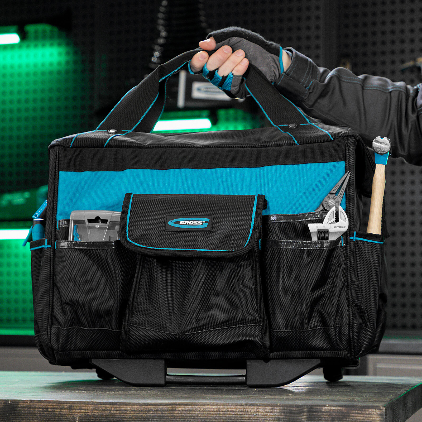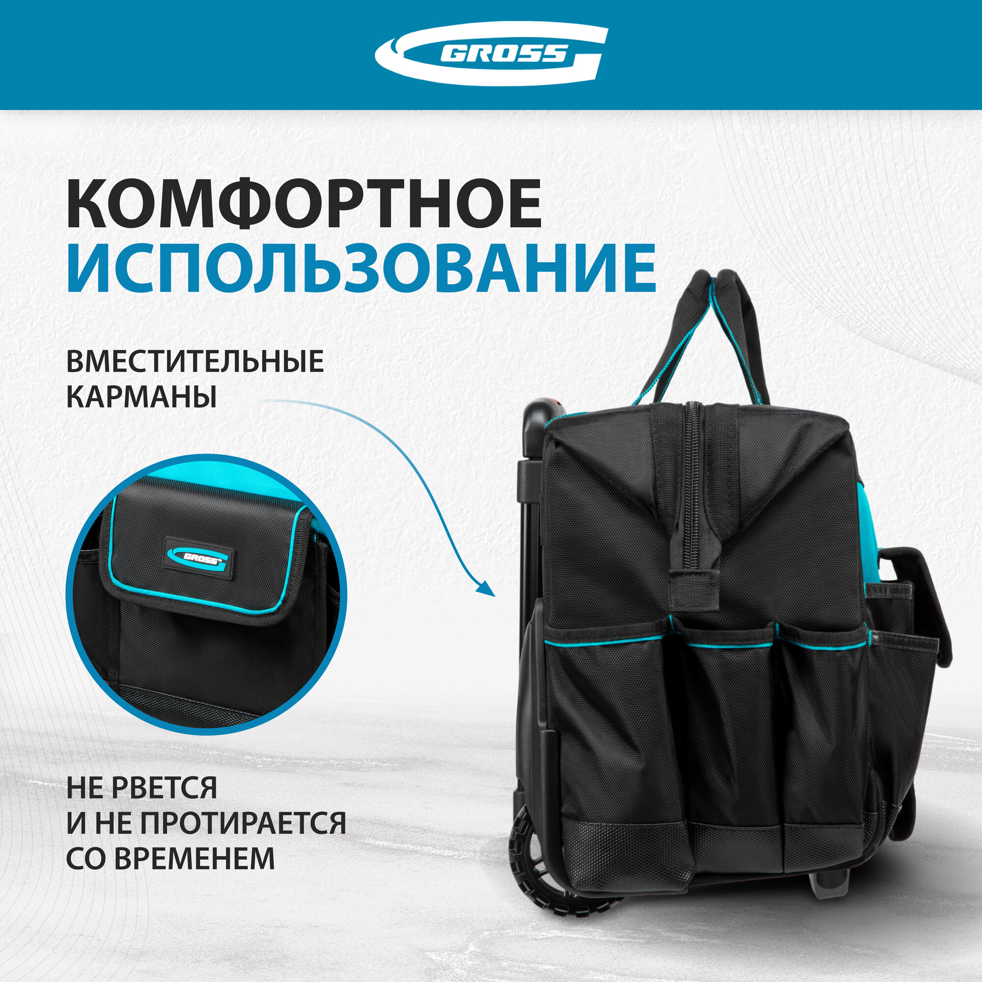 Сумка для инструмента GROSS, выдвижная рукоятка, колеса, наплечный ремень 90276