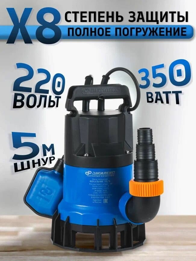 ДЖИЛЕКС Насос погружной фекальный Джилекс фекальник 230/8 Н 230л. мин., каб. 7м, Н 8м.