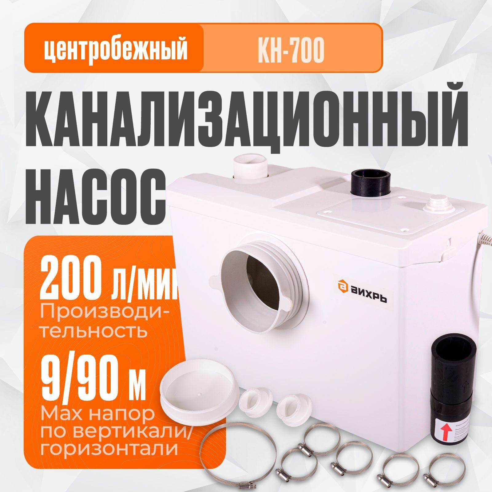Купить Канализационный насос КН-700 Вихрь (700 Вт, 200 л/мин, по вертикали 9 м, по горизонтали 90 м, 2 входа, до +60 С)