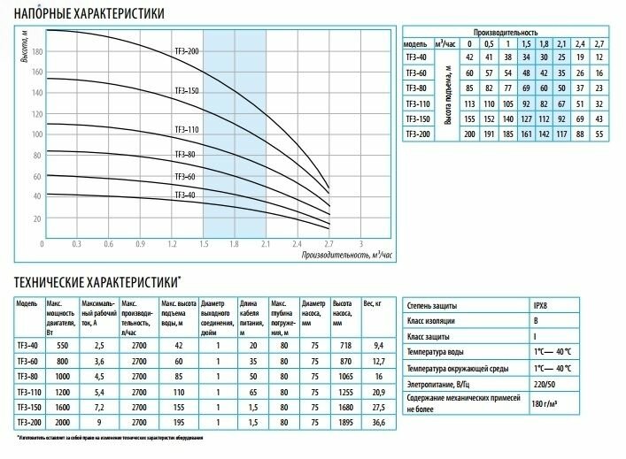 | Отзыв: | Со специалистами разговаривал, говорят, что около 30% насосов горят по причине неправильного подбора, имейте это ввиду. |