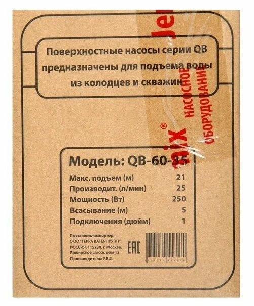 Насос поверхностный Jemix Qb-60-35, 250 Вт, напор 21 м, 25 л/мин, антиблокировка Jemix 7846668 .