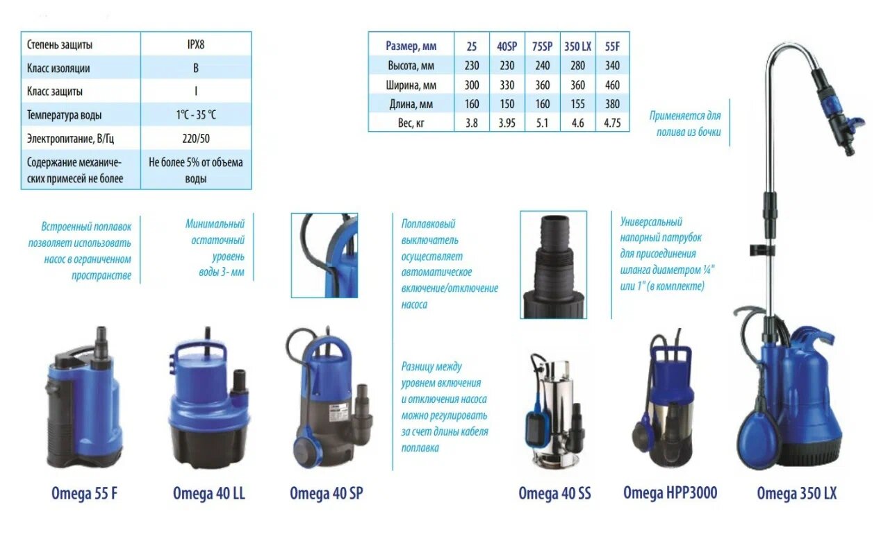 | Дополнительная информация | встроенный поплавок; два режима работы |