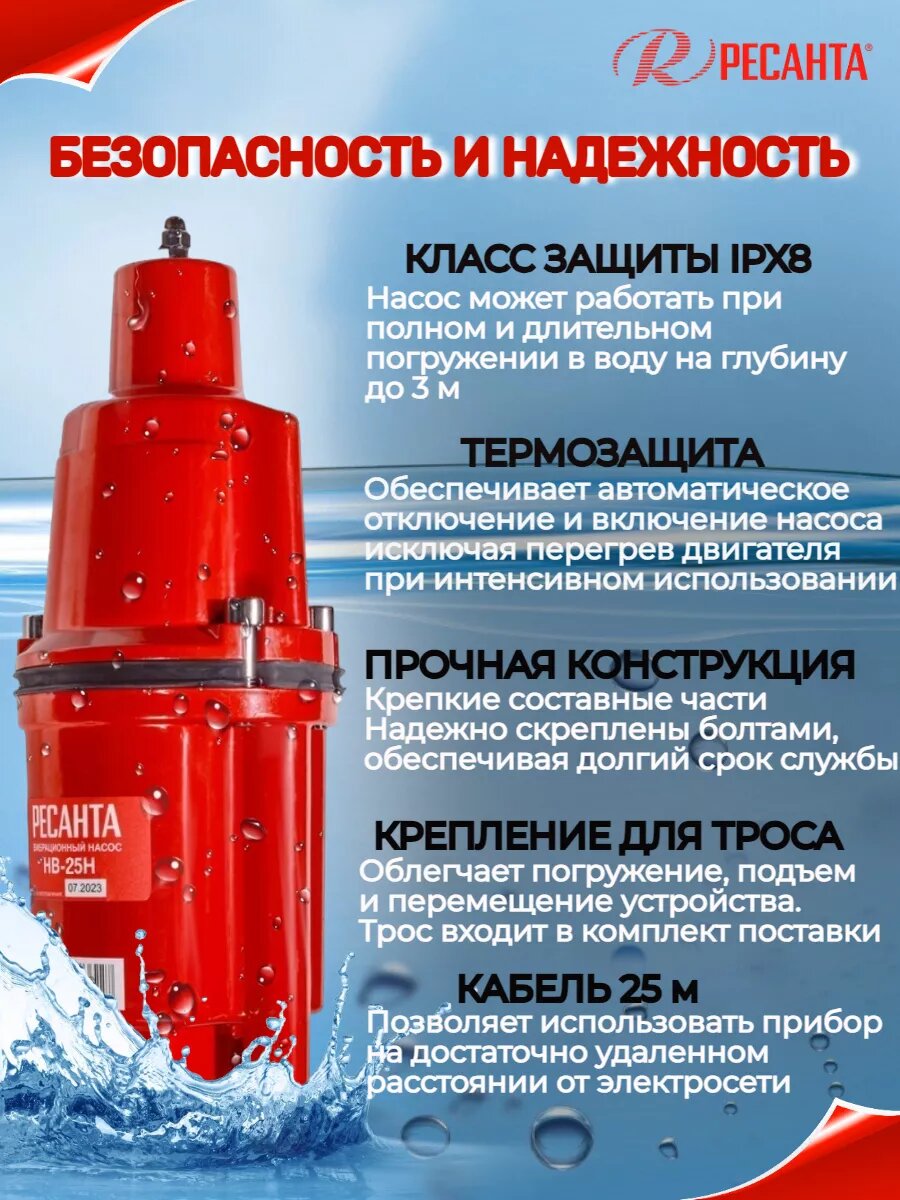 СохранитьНасос вибрационный погружной "Ресанта" 25м н/з интересное: