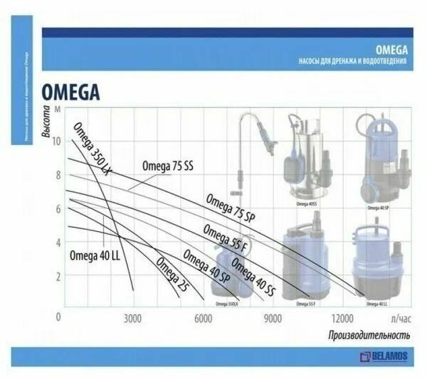Купить Дренажный насос Belamos Omega 75SP (217л/мин, напор 9 м, кабель 10 м.)OMEGA75SP6