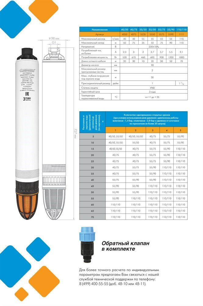 Насос скважинный центробежный водомет 55/90 ок (обратный клапан в комплекте) | код 5590 | Джилекс ( 1шт )