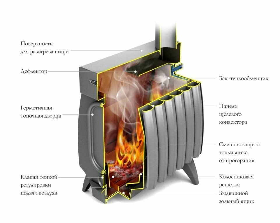 | Топливо | дрова / пеллеты / уголь |