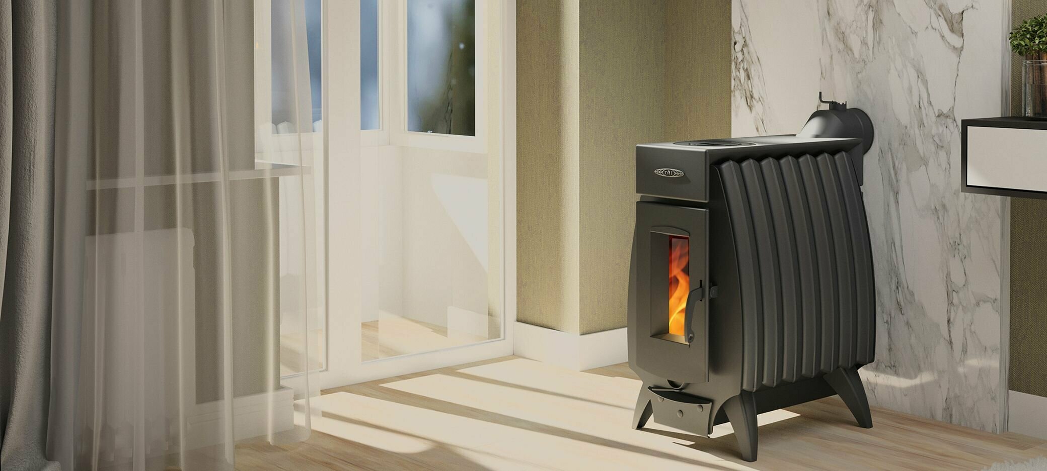 Печь отопительная ТМФ огонь батарея 5 цвет чёрный (100 куб) быстрый нагрев