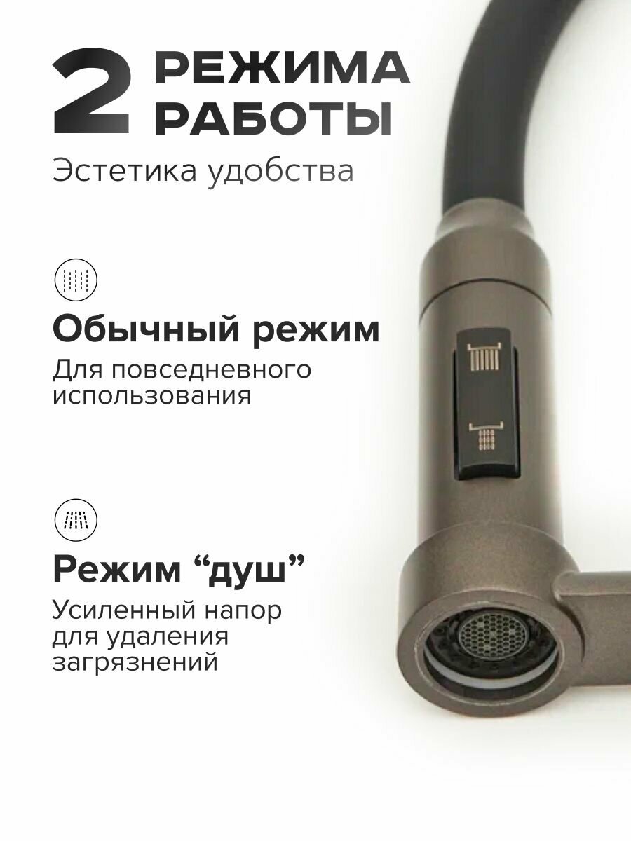 СохранитьСмеситель для кухни с гибким изливом и поключением фильтра питьевой воды Rose R758Y, пепельный интересное: