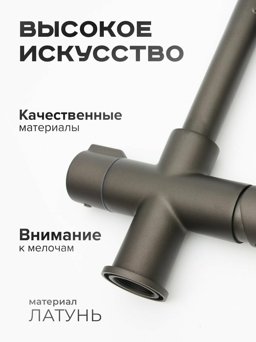 Смесители для кухни с гибким изливом и подключением фильтра ROSE R758Y (латунь, цвет пепельный)