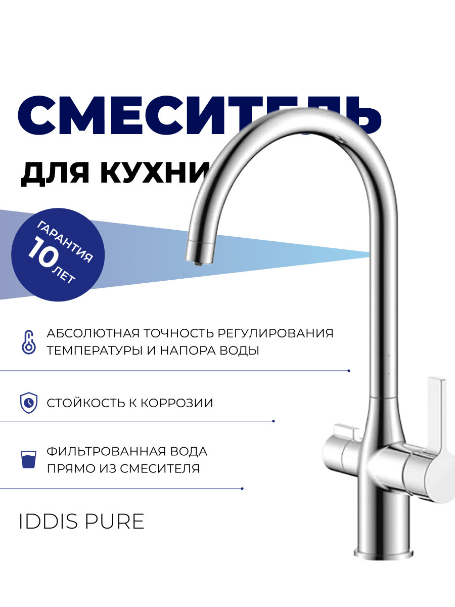 Смеситель для кухни IDDIS Pure под фильтр, хром (PURSBFJi05)