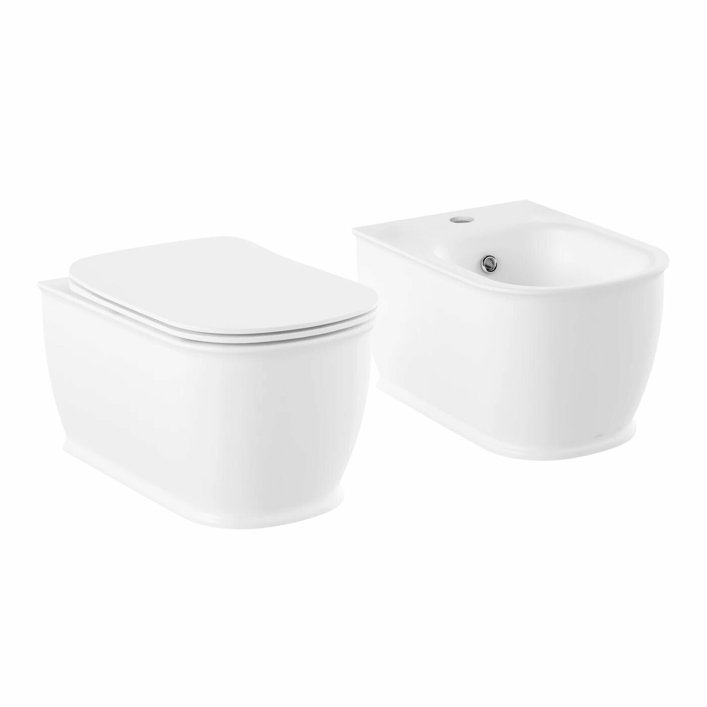 Подвесной унитаз Lavinia Boho Bell Pro Rimless 21031001 в комплекте 2 в 1: чаша безободкового унитаза с сиденьем микролифт и подвесное биде