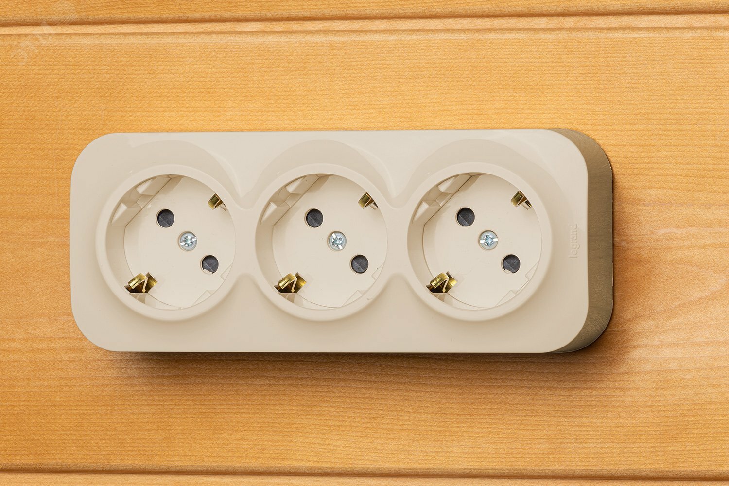 Розеточный блок 3x2P+E со шторками дерево Quteo 782288 Legrand