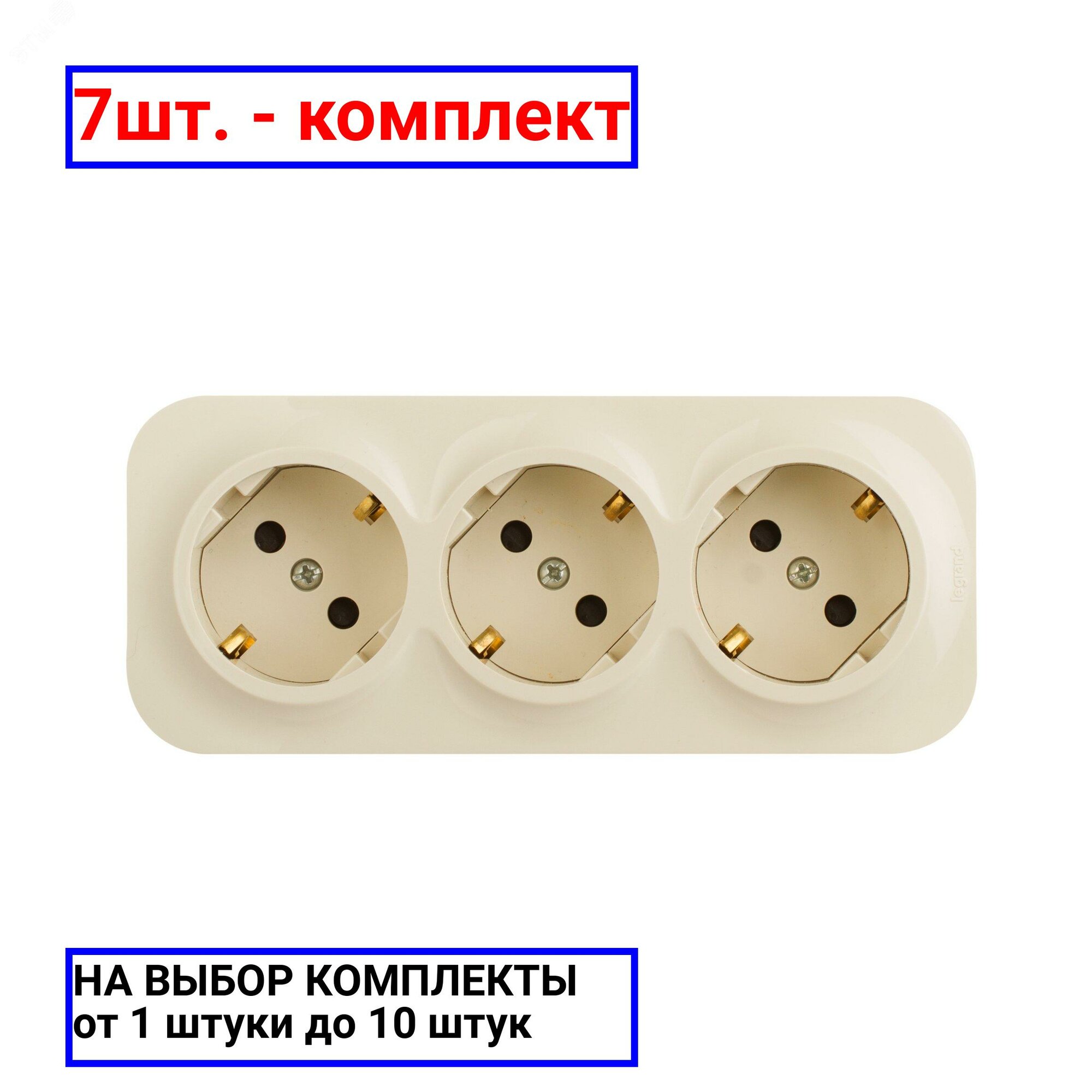 7шт. - Quteo розеточный блок с предварительным подключением 3 x 2К+З с защитными шторками - 16 A - 250 В IP 20 - Слоновая кость / Legrand; арт. 782268; оригинал / - комплект 7шт
