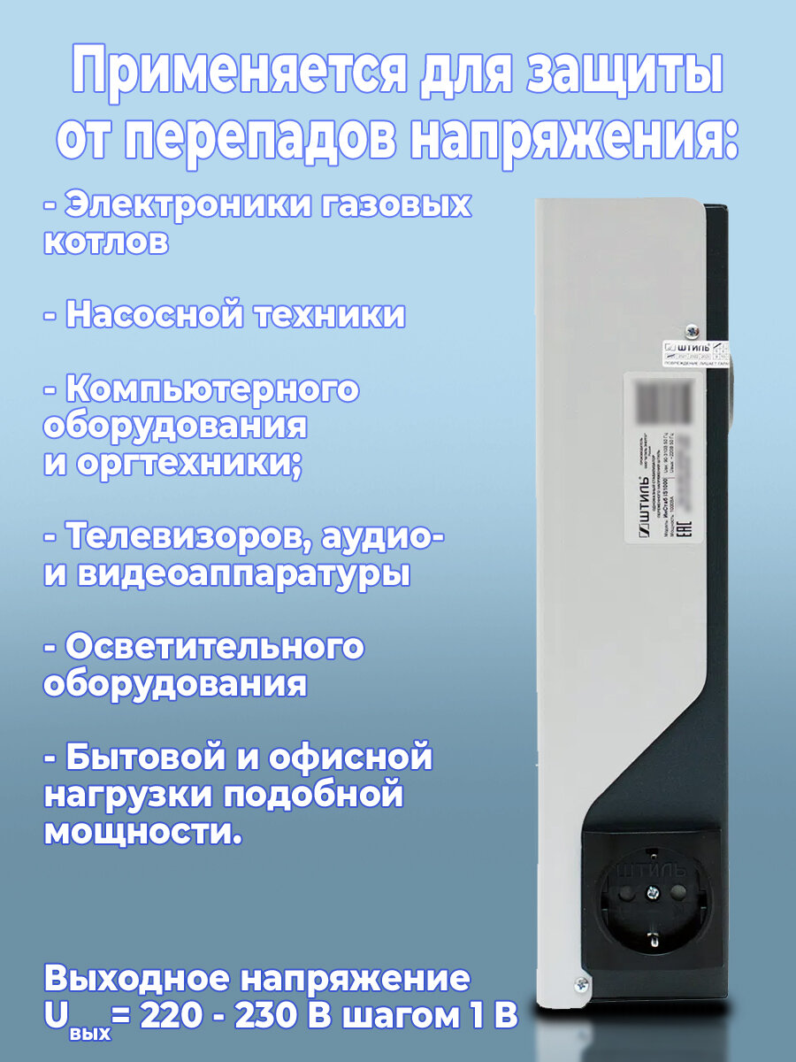 | Плюсы: | Бесшумный, компактный и главное выполняет свою функцию на 100%, покупал его для газового котла Protherm Yaguar, до этого был релейный стабилизатор, при скачке напряжения сгорел, а Штиль работает, скачки бывают иногда, котел работает в обычном режиме, рекомендую именно для котла, так как у него плата нежная, чуть что сразу перегорает, защита нужна и напряжение 220 вольт, которое Штиль выдает постоянно |